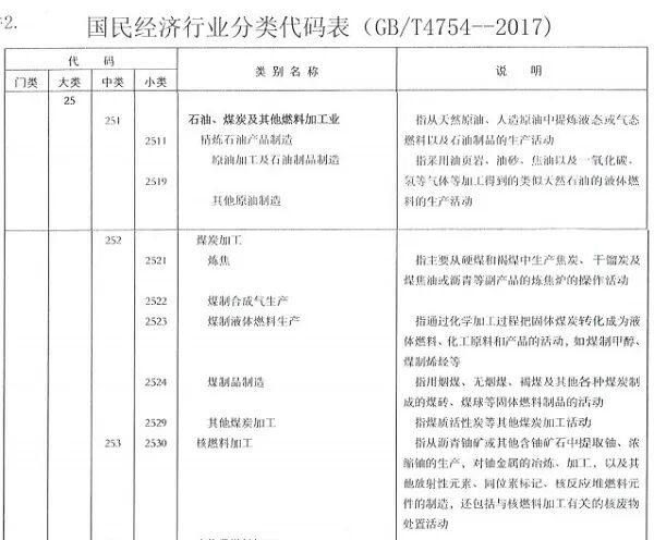 GB/T4754-2017 制造业25大类石油、煤炭及其他燃料加工业